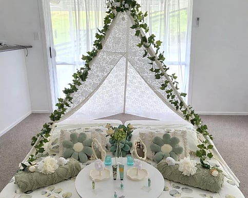 Allow us to set up a tranquil space for your guests or unleash your creativity and enjoy setting up yourself with our DIY option. We provide comfy foam mattresses, protectors, sheets, duvet covers (no inner), light blankets, and themed props.